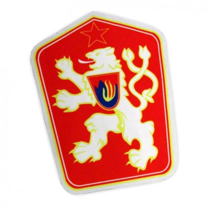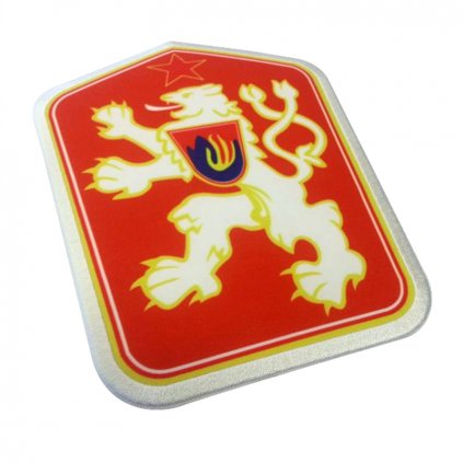 Černá placka s erbem a lvem. Vhodný doplněk pro každého českého fandu.