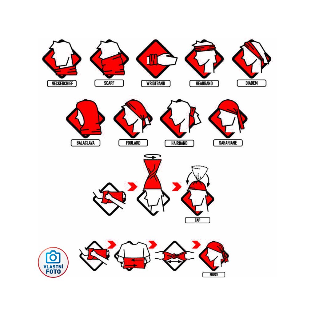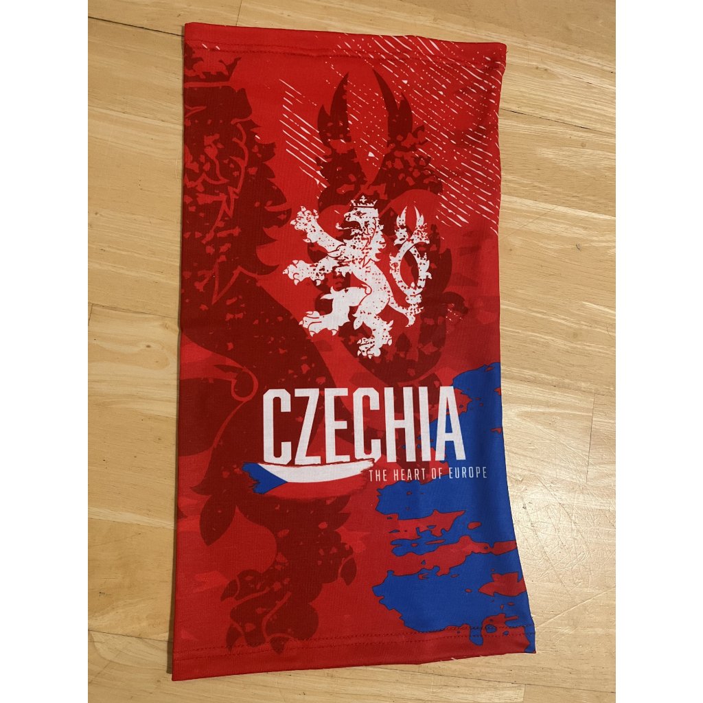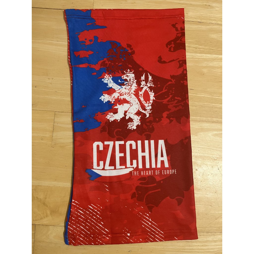 Multifunkční šátek, nákrčník, bandana v národních barvách s nápisem CZECHIA a lvíčkem. Elastický šátek, nabízí praktickou a funkční hodnotu s vysokou variabilitou použití. Bandana je opravdu multifunkční, lze jej použít jako pokrývku hlavy, čelenku, ochranu před prochlazením obličeje nebo krku, k sepnutí vlasů, potítko atd.