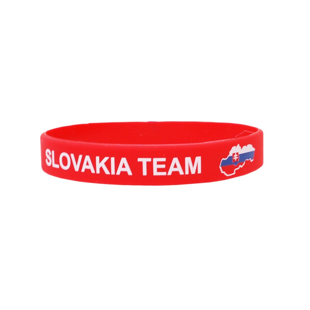 Červený silikonový náramek s nápisem TEAM SLOVAKIA a vlajkou.