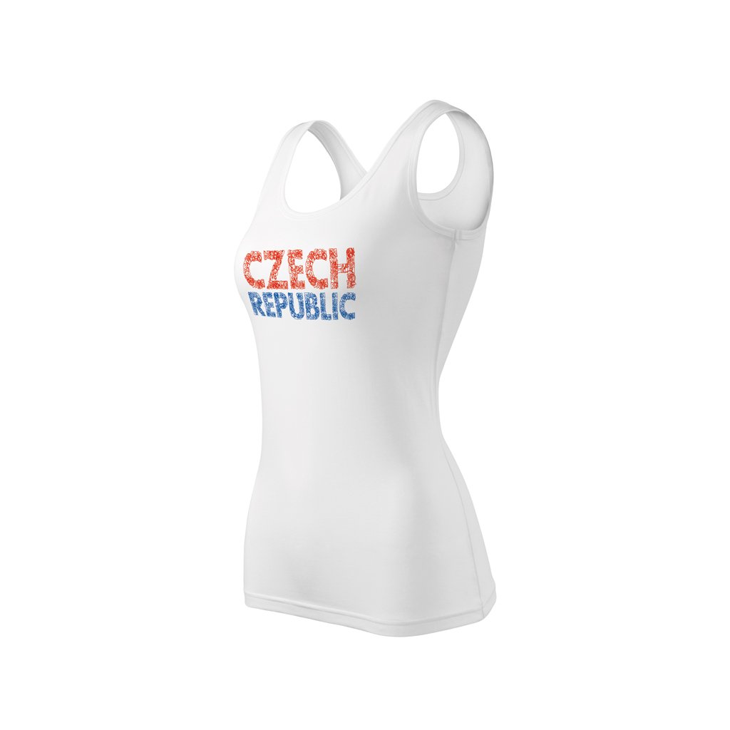 Přiléhavé dámské tílko s širšími ramínky má na hrudi nápis CZECH REPUBLIC a mělo by patřit do šatníku všech fanynek českého sportu a milovnic své vlasti. Díky dobrému materiálu a příjemnému střihu se hodí na běžné nošení například při cestování a zajistí dostatečný komfort i během aktivního fandění při důležitém mezinárodním utkání.