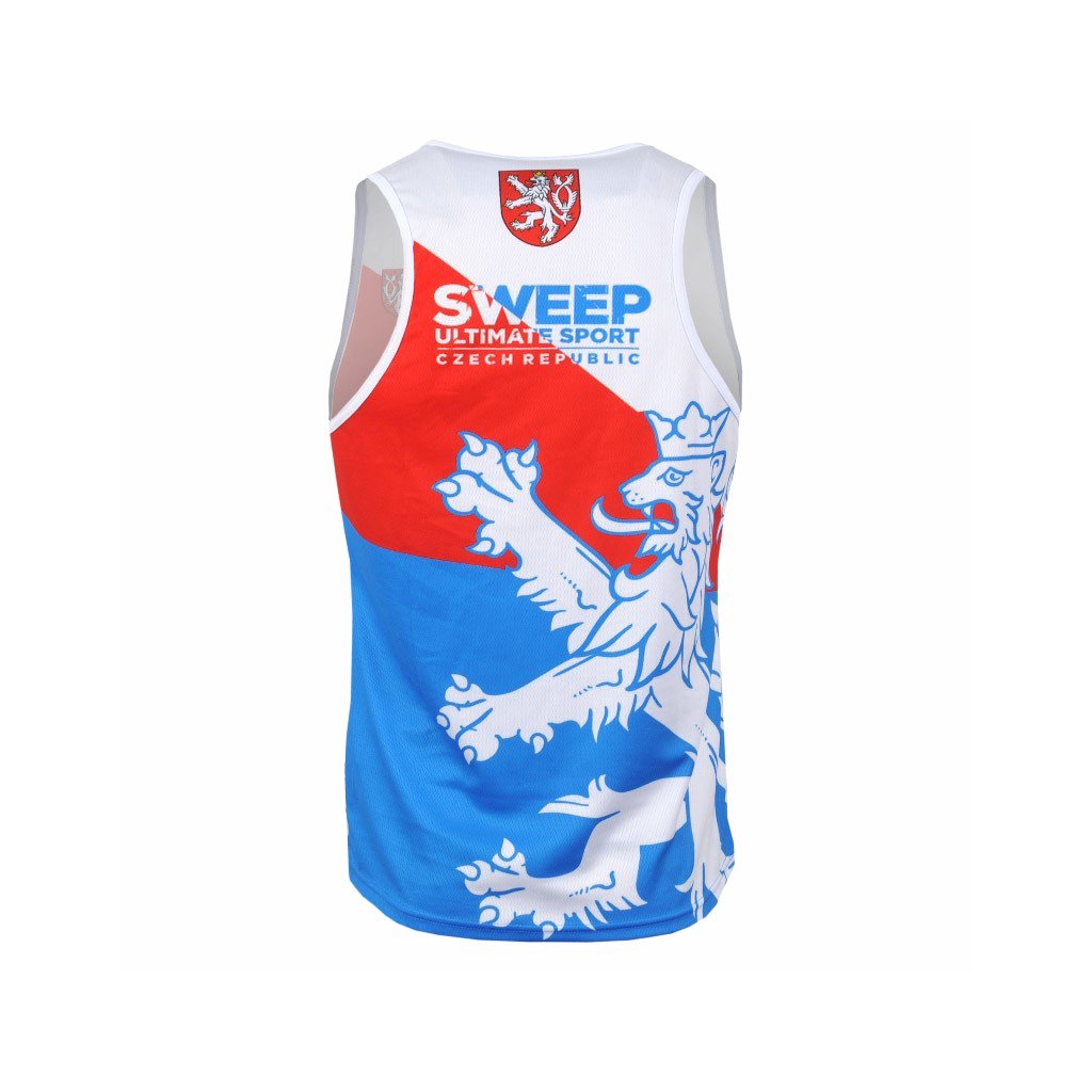 Pánské tílko ULTIMATE SPORT CZECH REPUBLIC v barvě trikolory, díky stuktuře pletení i speciálnímu tvaru vlákna výborně odvádí pot, který navíc prakticky nenasává a zůstavá tak stále téměř suchý. Materiál je pružný, velmi lehký a vzdušný a dopřává tak tělu ideální cirkulaci vzduchu, která výrazně snižuje přehřívání organismu. Je tak ideální především do letního počasí, případně pro indoorové oblečení.